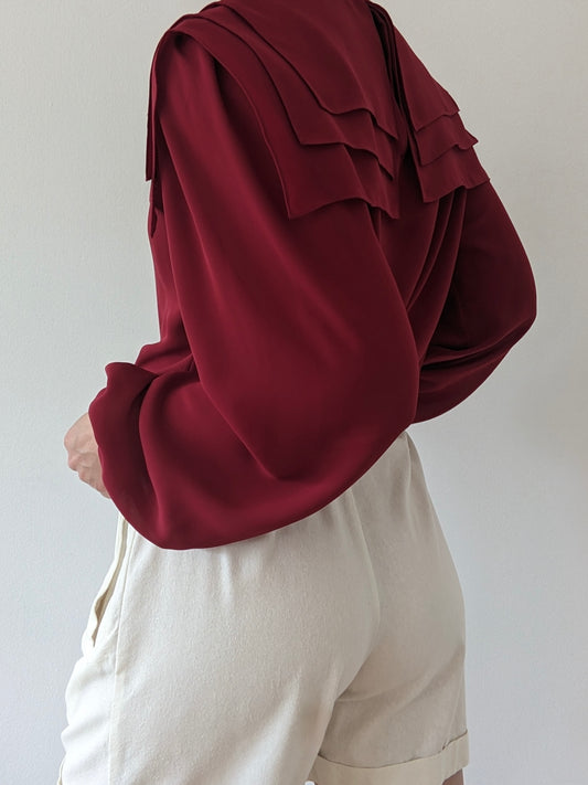 Beautiful Vintage Merlot Layered Collar Blouse