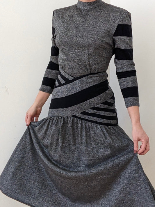 Beautiful Vintage Striped Corset High-Neck Dress