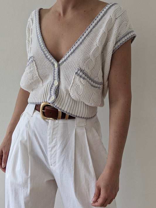 Vintage Ivory & Lavender Cable Knit Vest