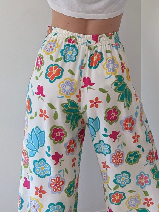 Sweetest Vintage Floral Silk Wide Leg Pants