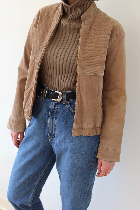 Vintage Cropped Latte Suede Bomber