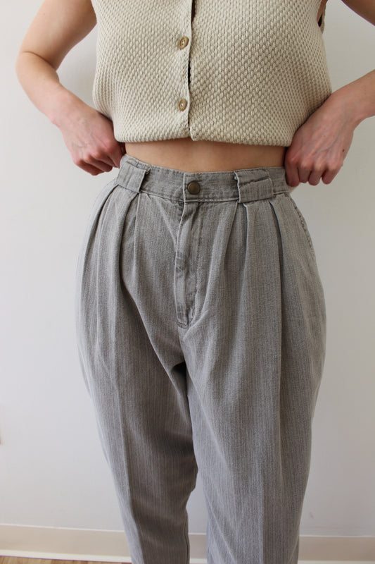 Vintage Stone Pleated Cotton Trousers