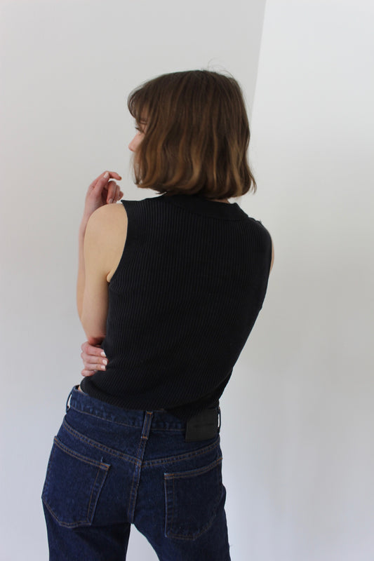 90s Faded Black Sleeveless Silk Top