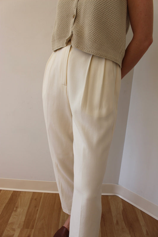 Classic Vintage Cream Pleated Wool Trousers