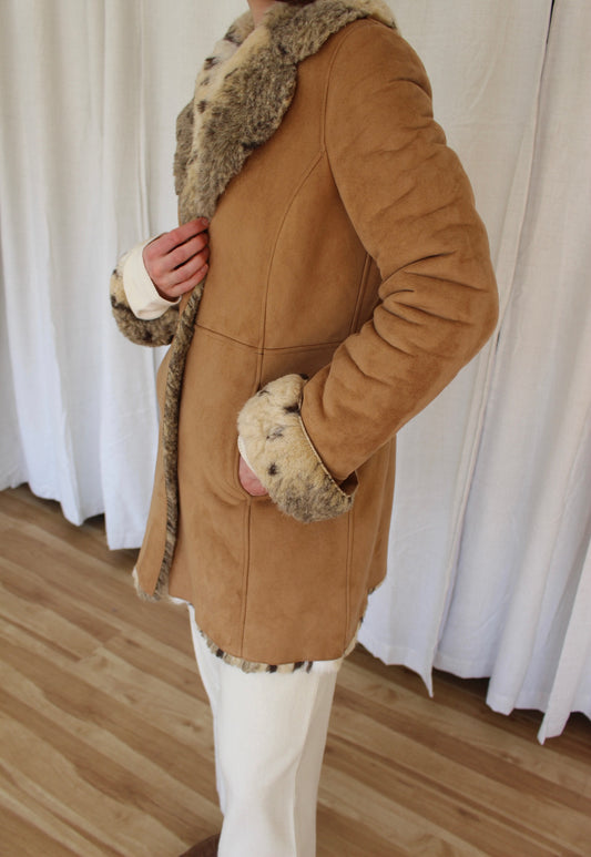 Vintage Vegan Suede & Faux Fur Coat