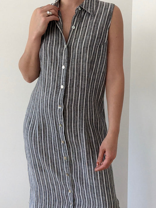 Vintage Graphite Striped Linen Market Dress