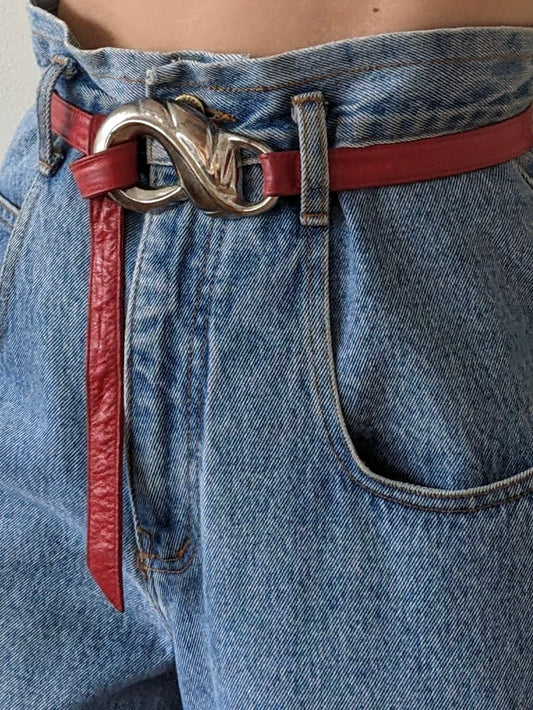 Vintage Silver Buckle & Red Leather Tie Belt