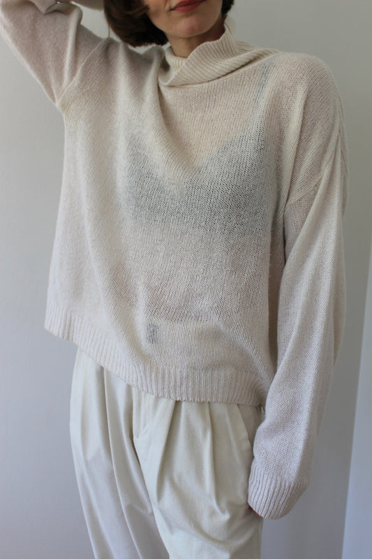 Lovely Vintage Cream Silk & Angora Turtleneck
