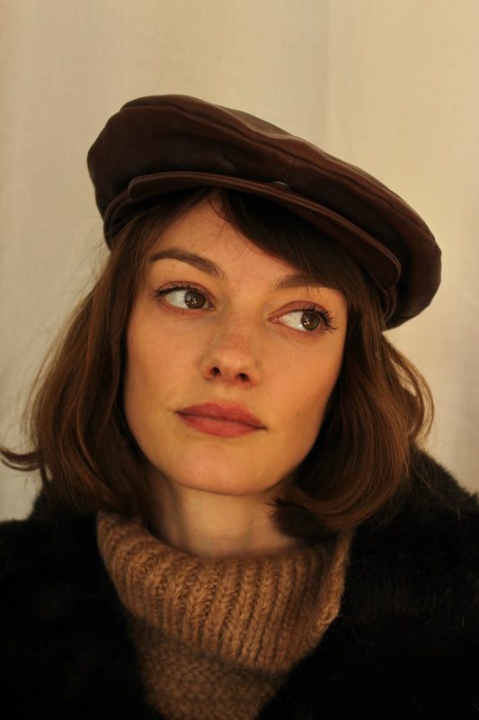 Vintage Tobacco Leather Flat Cap