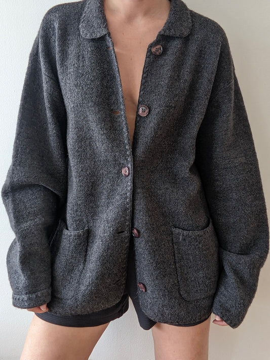 Vintage Charcoal Wool Cardigan