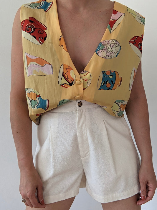 Vintage Vase-Print Silk Vest