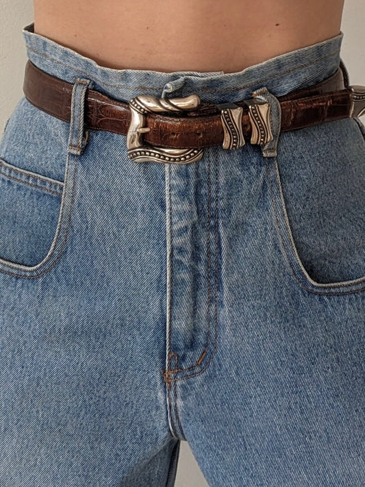 Bold Vintage Silver Hardware & Embossed Leather Belt