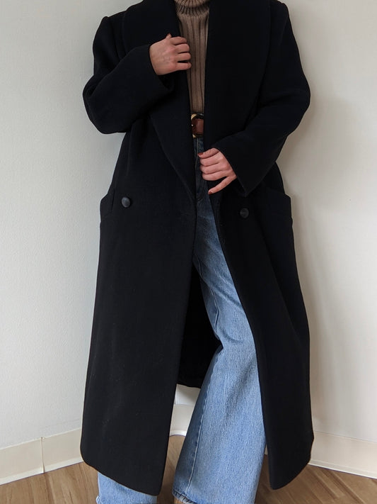 Vintage Ink Black Wool & Cashmere Shawl-Collared Coat