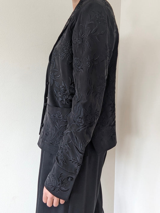 Vintage Dana Buchman Ink Black Embroidered Silk Jacket