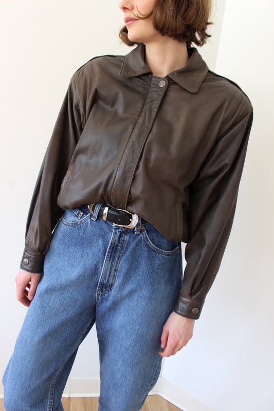 Vintage Espresso Leather Bomber