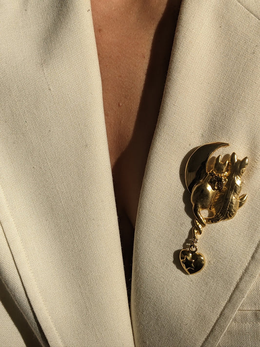 Sweetest Vintage Gold Cat & Dog Brooch