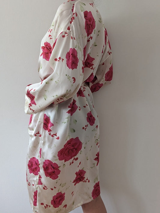 Vintage Floral Silk Satin Robe