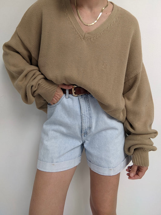 90s Sand Waffled Silk Button Up