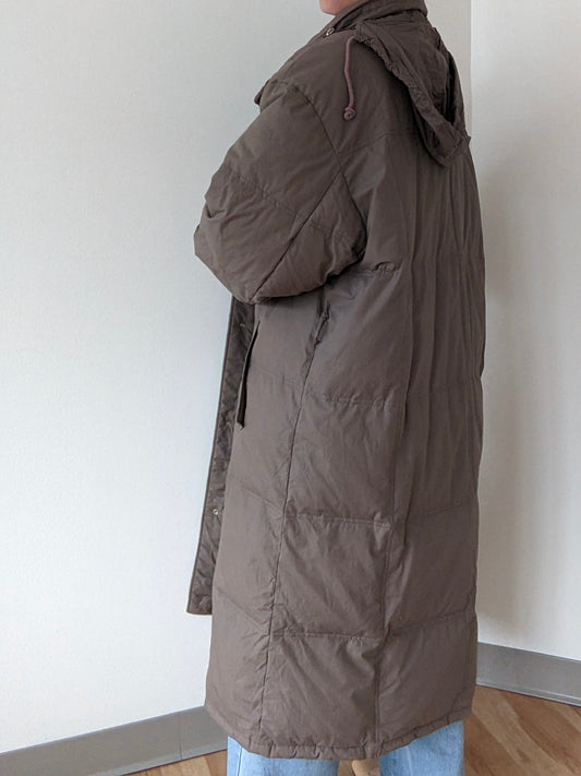 Vintage Taupe Quilted & Belted Duck Down Puffer Coat