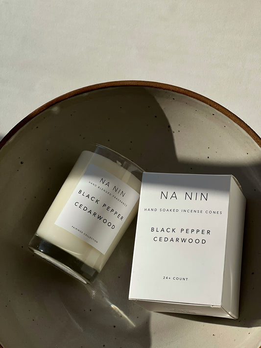 Black Pepper & Cedarwood 5oz Candle / Incense Set