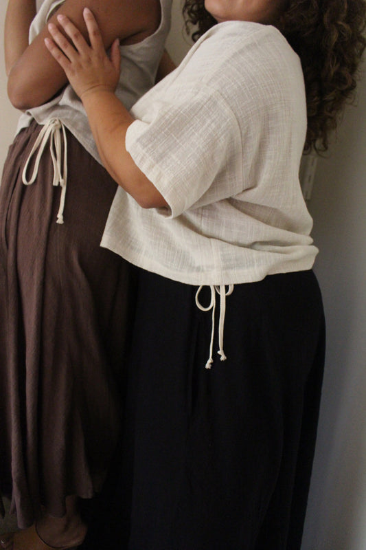 Our cotton gauze is constructed from 100% cotton, presenting a relaxed yet elegant silhouette with a lightweight, airy texture.