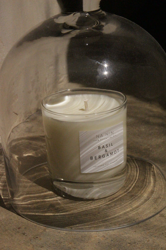 Basil & Bergamot Essential Oil Soy Candle / Available in 5oz & 8oz