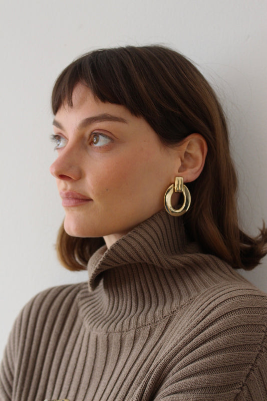 Elegant Vintage Gold Hoop & Faux Pearl Drop Earrings