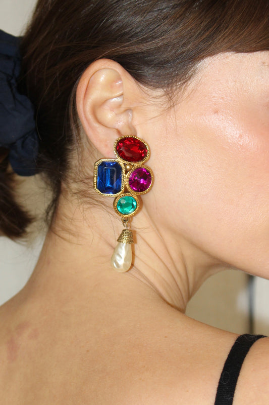 Vintage Colorful Gem & Faux Baroque Pearl Earrings