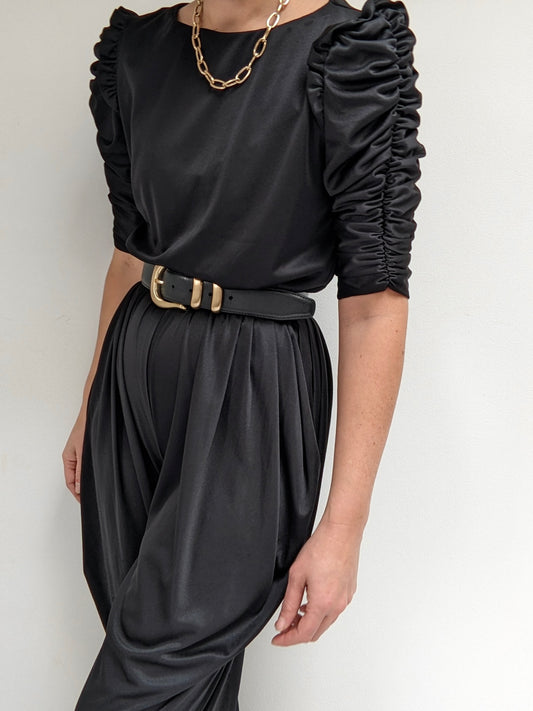 Beautiful Vintage Ink Brushed Silk Tie Blouse