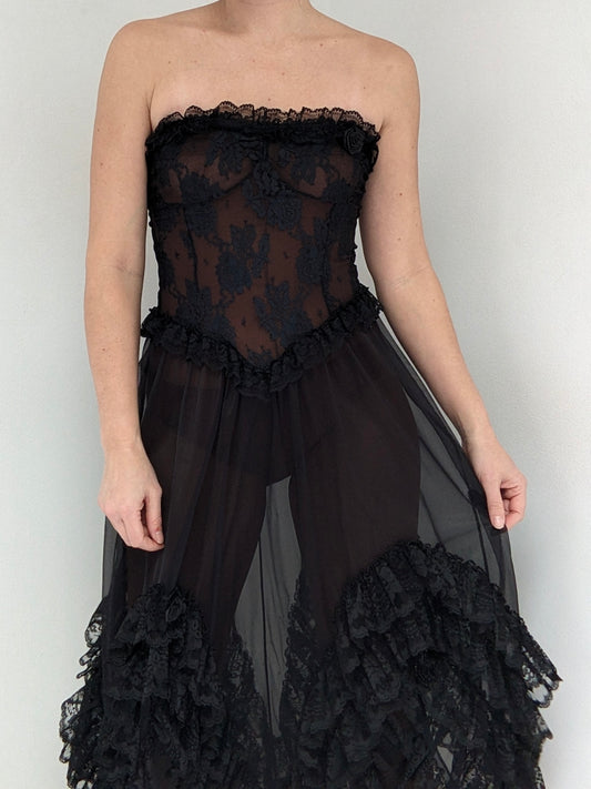 Gorgeous Vintage Caviar Sheer Sleeve Evening Dress