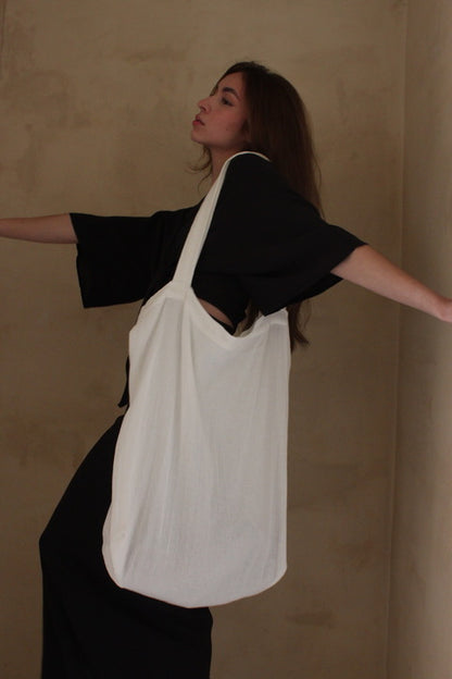The Benny Tote is a perfect tote for filling up and carrying just about anywhere! This favorite seasonless staple packs up small and is perfect for carrying laundry, stowing a farmer's market bounty, or carrying all of your absolute favorite finds. We envision pairing one of our Benny Totes with a Na Nin Scrunchie and a stunning pair of earrings.