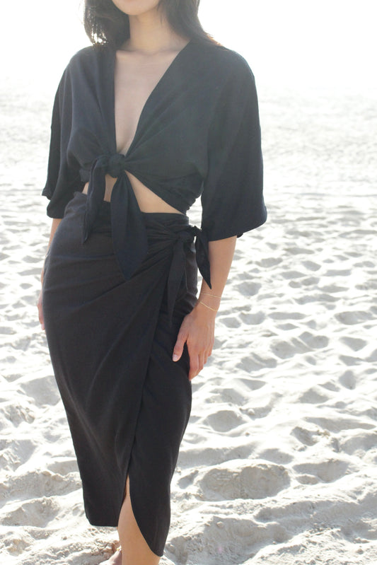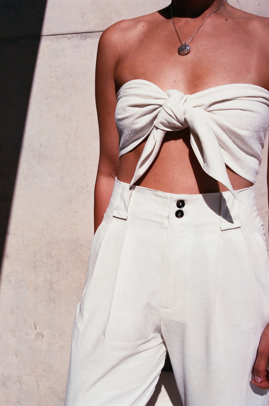 Raw silk is a natural fabric made from untreated silk. It is inherently non toxic, hypoallergenic, and features a matte, nubby texture. With natural breathability, subtle stretch, and durability, raw silk is perfect to wear throughout the seasons. The occasional shade or darker weaving variations are inherent to the fabric and should not be considered defects, as they enhance the individuality of each garment. Raw silk tends to stretch with wear and will go back to true fit after washing and drying.