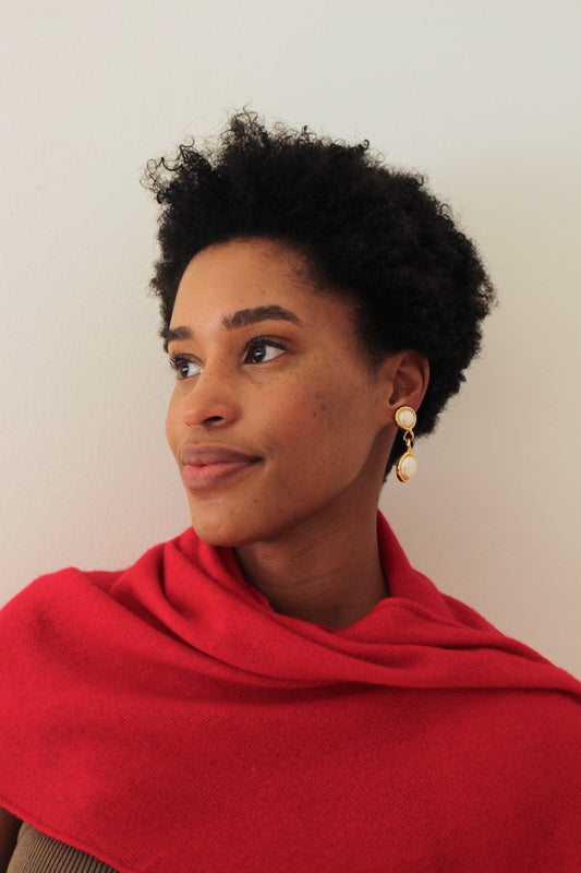 Sweetest Vintage Red Enamel & Dropped Faux Pearl Earrings