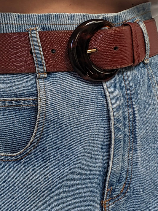 Vintage Saddle Brown Leather & Solid Brass Belt
