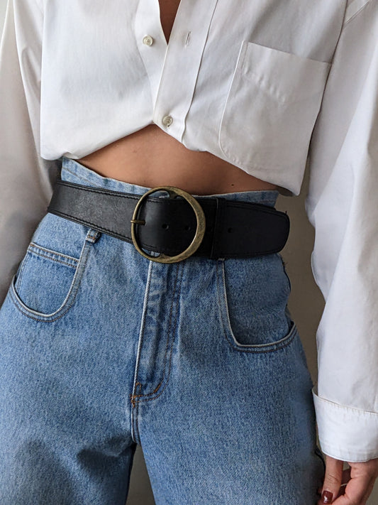 Bold Vintage Black Pebbled Leather Belt