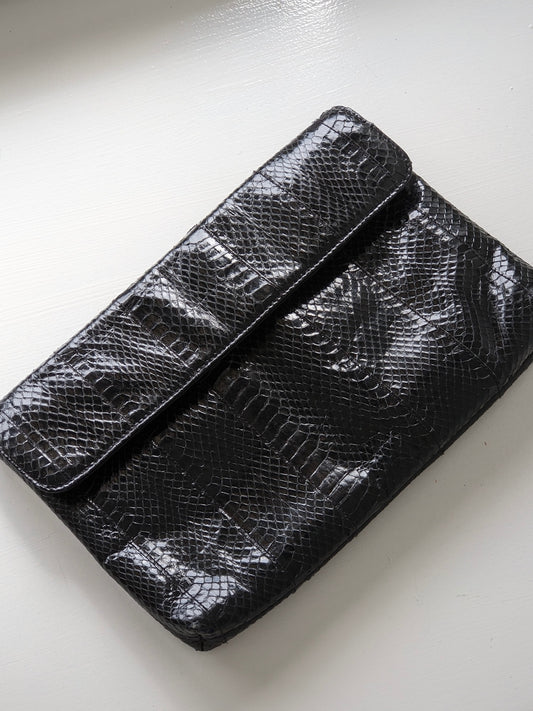 Sleek Vintage Onyx Snakeskin Leather Clutch