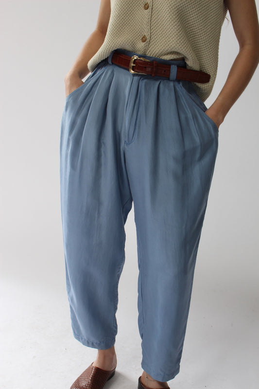 Petite Vintage Yves Saint Laurent Silk Pleated Trousers