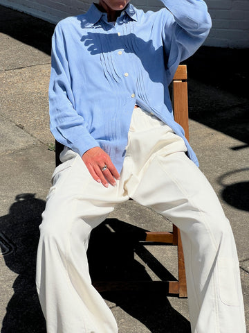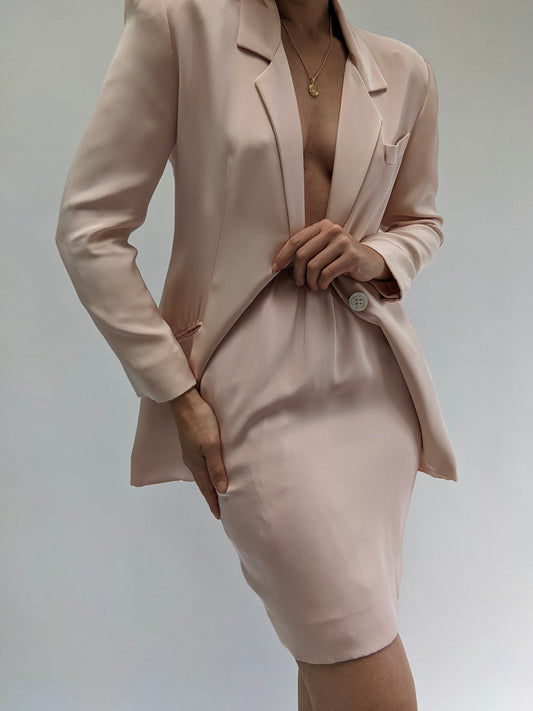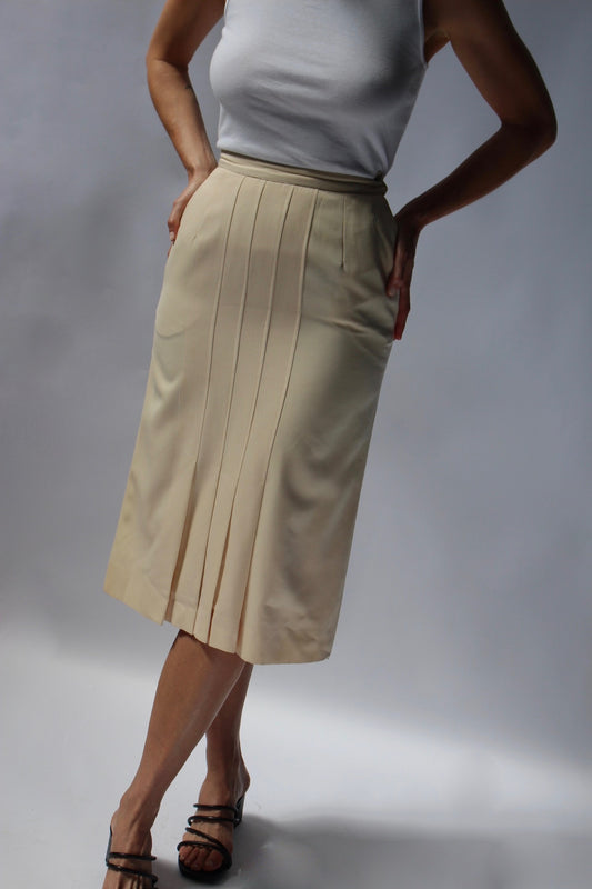 Vintage Cream Salvatore Ferragamo Pleated Wool Pencil Skirt