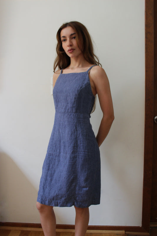 90s Stone Blue Linen Dress