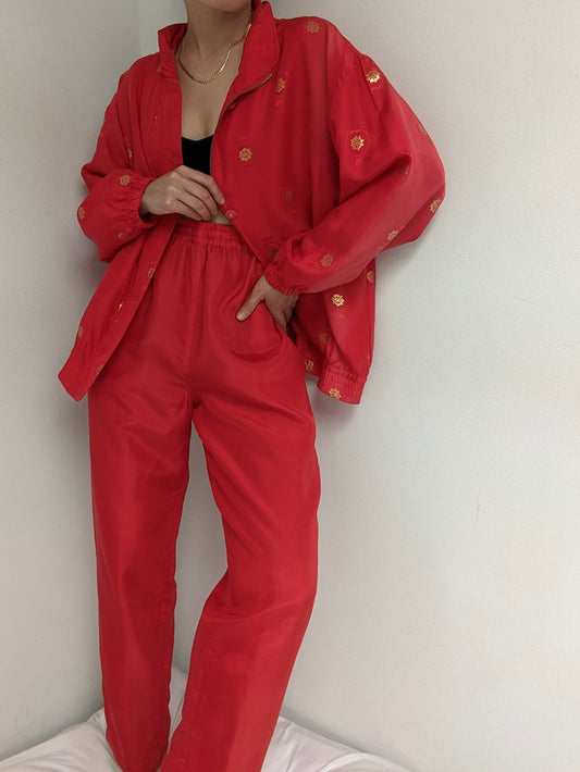 Vintage Cherry & Gold Silk Leisure Set