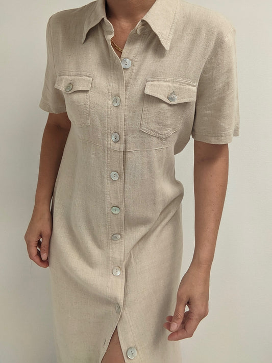 Vintage Oat Linen Day Dress