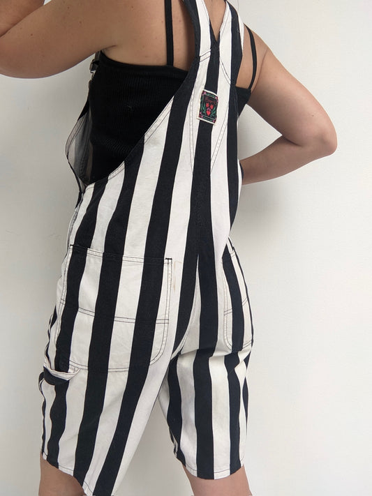 Vintage Esprit Sport Ink Black Striped Shortalls