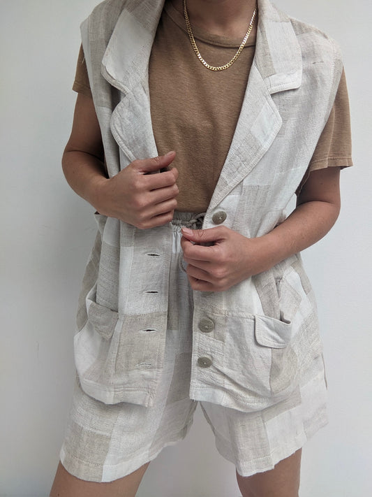Vintage Patchwork Linen Shorts Set