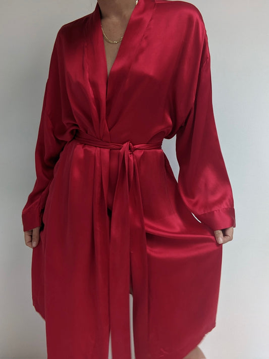 Vintage Scarlet Silk Robe