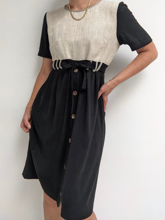 Vintage Oat & Onyx Linen Dress