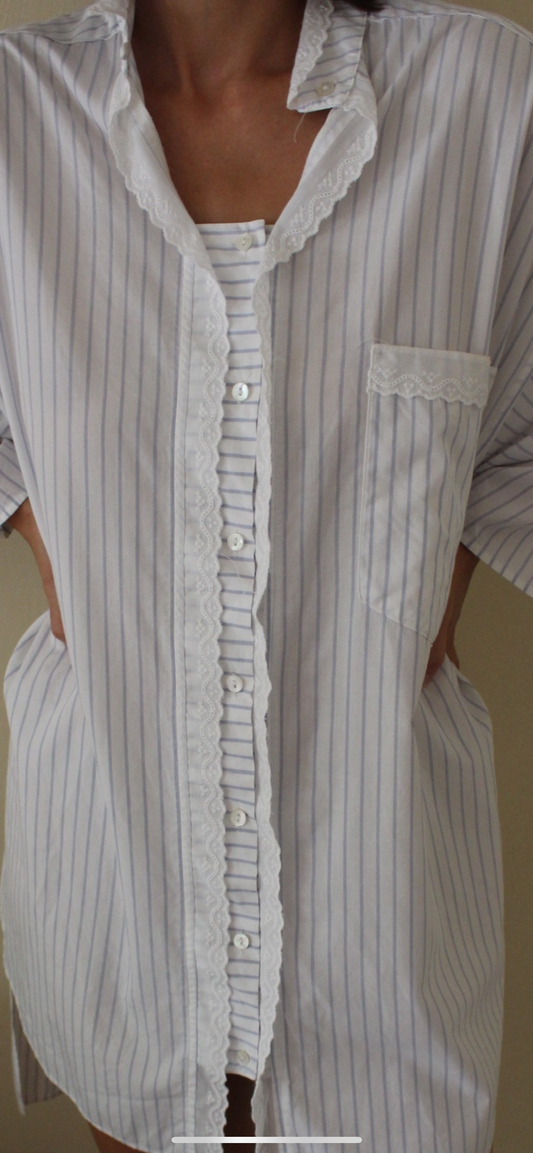 Vintage Givenchy Powder Blue Striped Sleep Shirt