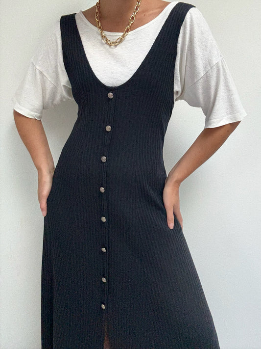 Vintage Black Ribbed Tank Dress