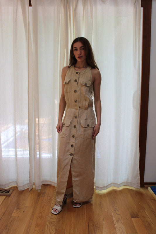 Incredible Vintage Oat Linen Halter Dress