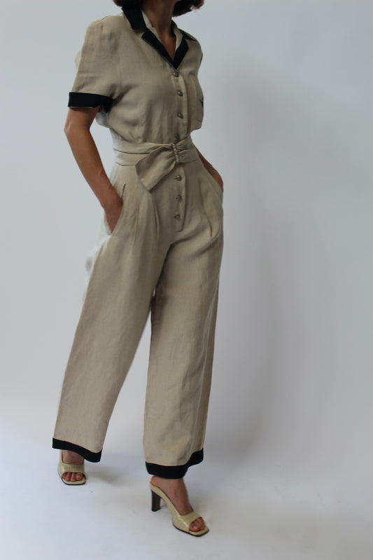 Favorite Vintage Linen Wide Leg Belted Jumpsuit
