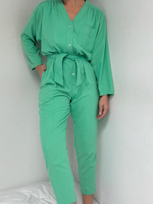 Vintage Belted Jade Raw Silk Jumpsuit